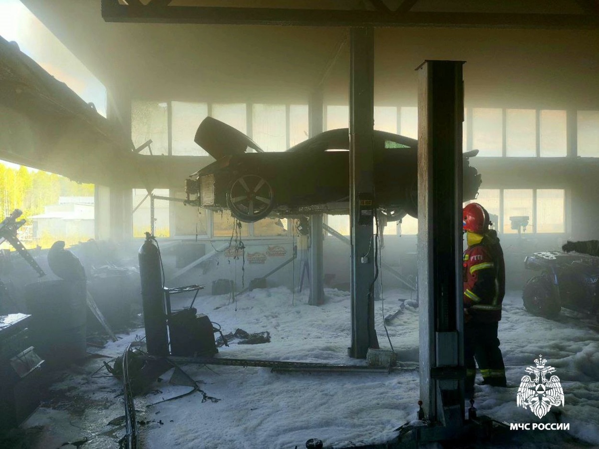 По информации ГУ МЧС, автомобиль загорелся сегодня в ремонтной зоне салона, пострадали два человека.