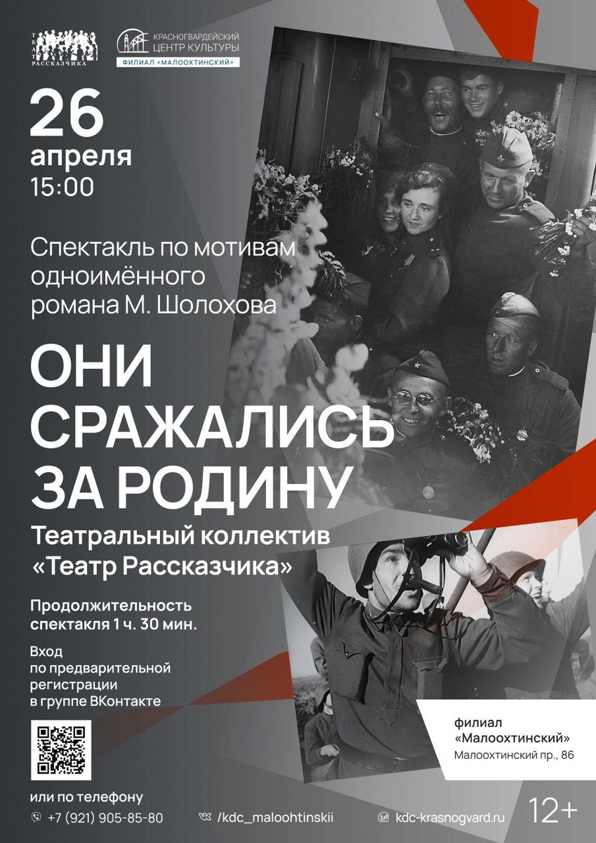 Театр Рассказчика приглашает на спектакль "Они сражались за родину" + 7 26 апреля в 15.00 Адрес: Малоохтинский 86 Есть 40 мест Записывайтеся в комментариях