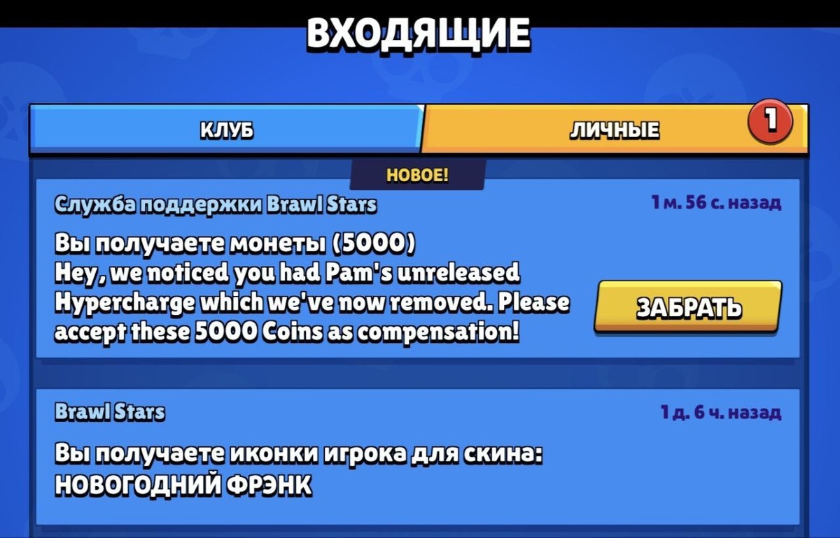 😄 Компенсация здесь! Разработчики начали выдавать компенсацию тем игрокам, у кого отобрали купленный гиперзаряд на Пэм. Тем, кто выбил гипер из призов Старр также выдают компенсацию. Мир Supercell. Подписаться