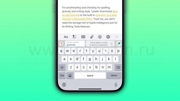 ИИ-помощник Grammarly и генеративный ИИ, доступные с премиум-апгрейдом ($29.99 в месяц), могут помочь в переписывании текста и обнаружении плагиата. Я начал использовать Grammarly из-за его грамматической точности и помощи в написании, и теперь даже предпочитаю его функцию автозамены (умная автозамена) стандартной клавиатуре Apple. Если говорить о скорости, клавиатура Grammarly дает аналогичное ощущение по сравнению со стандартной.