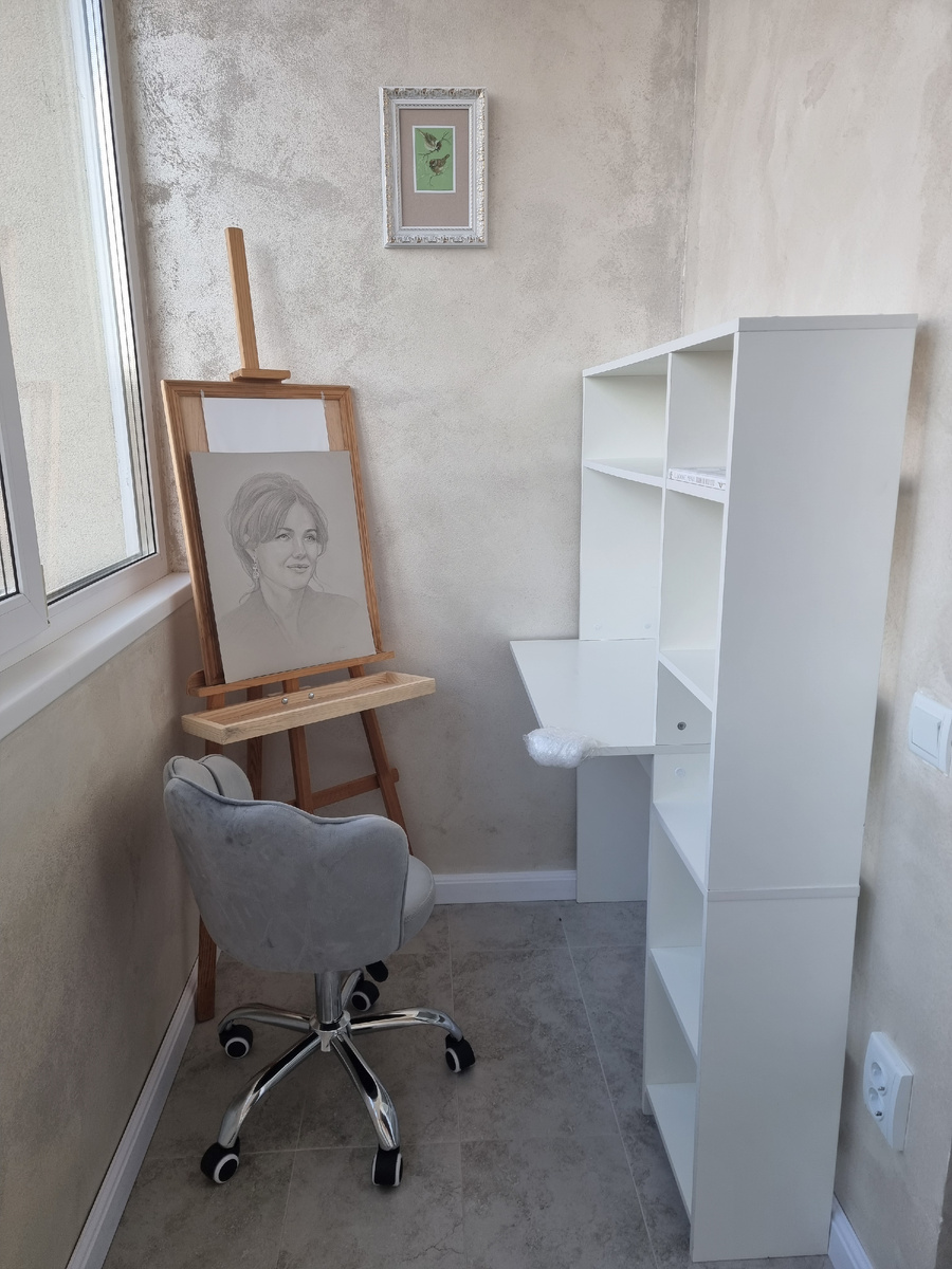 Должно быть светлым. Но не с прямыми солнечными лучами. В идеале окна на северную сторону. Тогда в вашей мастерской будет всегда светло в любую погоду. Источник дополнительного света должен быть не тёплого и не холодного освещения, для этого смотрим, что пишет производитель на упаковке, если написано: белый теплы/холодный, то не берём. Он нам не подходит. Для хорошего освещения художнику нужен нейтральный белый свет, так солнце светит днем именно таким светом. Теперь о мощности, тут нужно будет вспомнить математику и посчитать сколько у вас квадратных метров, именно ориентируясь на них мы сможем рассчитать сколько потребуется лампочек и какой мощности. И не забываем по настольную лампу, которая будет стоять противоположно вашей рабочей руке. Рабочее место, должно позволять вам отходить от работы без затруднения, поэтому заранее подумайте как все будет стоять, чтобы ничего не задеть, когда будете пятиться назад.