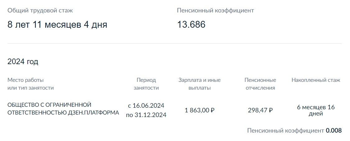 За 2024-й год добавились и баллы, и стаж для будущей пенсии от платформы Дзен