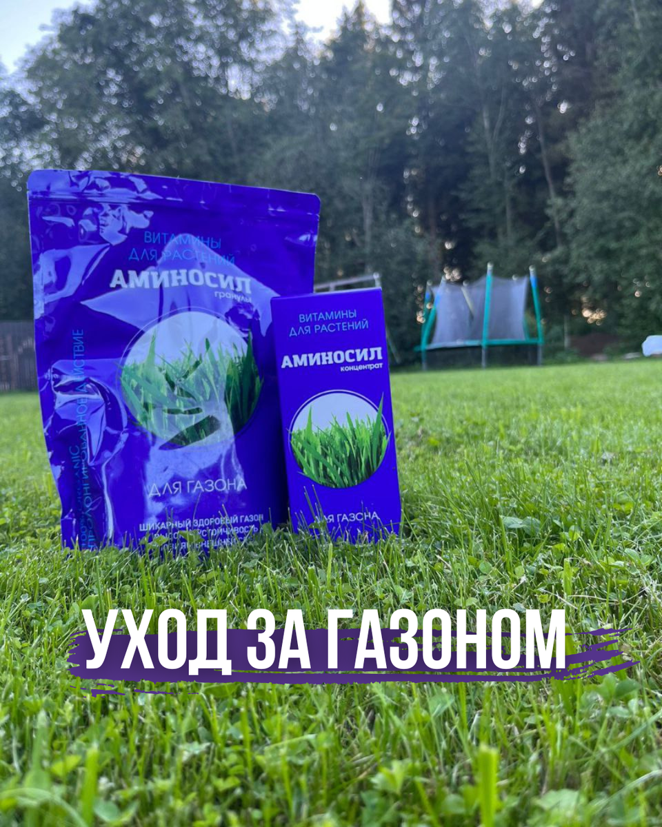 Вот основные этапы и советы: Полив 🚿 ✅ Поливать газон лучше утром или вечером, чтобы вода не испарялась слишком быстро. ✅ Во время жары газон поливают чаще, но реже — в прохладную погоду. ✅ Оптимально: 1—2 раза в неделю, по 10—15 литров на 1 кв. м. Стрижка ✂️ ✅ Первую стрижку проводят, когда трава достигает 8—10 см. ✅ Оптимальная высота покоса — 4—5 см. ✅ Не срезайте более 1/3 длины травы за один раз. Подкормка 🍽 ✅ Для подкормки газона прекрасно подойдут витамины АМИНОСИЛ. В широкой линейке препаратов есть специальные витамины, разработанные для газонов открыто типа. Подкормки необходимо проводить в весенний, летний и осенний периоды. Витамины абсолютно безопасны для детей и животных 🙏 Они помогут вашему газону сохранить насыщенный зелёный цвет. Обеспечат повышенную морозостойкость и ускорят восстановление газона после повреждений. Аэрация 🌪 ✅ Проводится весной и осенью. ✅ Аэрация — прокалывание почвы вилами или специальным аэратором для доступа кислорода к корням. Прополка ✔️ ✅ Уд