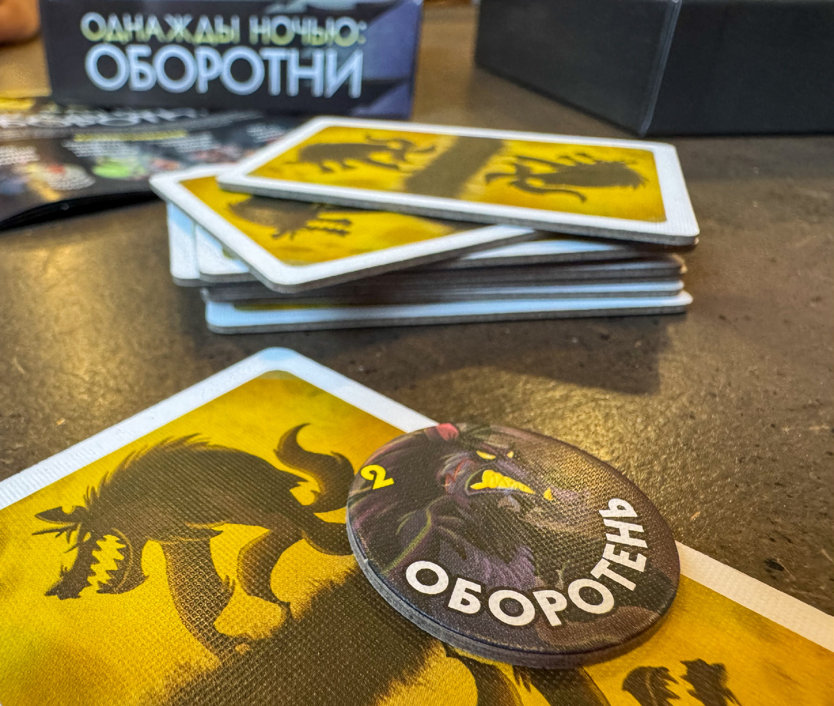 Я не самый сильный игрок в мафиозные игры — и много раз в этом убеждалась, хоть и в какие-то гибриды я могу играть чуть лучше, чем в обычную мафию. «Однажды ночью: оборотни» — как раз отчасти гибридная игра для большой компании, где жителям деревни нужно вычислить, есть ли среди них оборотень и кто он. ПРАВИЛА «Однажды ночью» — игра с ролями, где каждый в начале партии получает уникального персонажа со специфичными способностями. Количество и качество ролей будет зависеть от числа игроков — как и вероятность, что в игре будет оборотень: так, при игре вшестером могут быть от 0 до 2 оборотней, а вроде в партии впятером — от 0 до 1. В начале партии вы видите, кем вы являетесь, но потом все закрывают глаза — и в деревне начинается движуха. Начало довольно классическое: оборотни знакомятся друг с другом. А вот потом, когда они закрывают глаза, начинает происходить хаос:) Некоторые персонажи должны поменять свою роль на роль другого игрока (вор), другие — поменять местами роли соперников (см