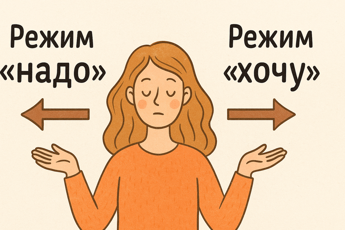 Хочешь по-другому? Придётся научиться выбирать «хочу». Узнаёшь себя? Значит, пора менять сценарий. В течение дня заметь, сколько раз звучит внутренний приказ: «Надо позвонить», «надо ответить», «надо быть полезной». Запиши эти моменты. Обычный день легко набирает 30–40 «надо». Увидев список, ты поймёшь масштаб привычки. Каждому пункту задай: Часть «надо» отпадёт сразу: они питались страхом, а не реальной необходимостью. Каждое утро выбирай один маленький импульс «хочу»: