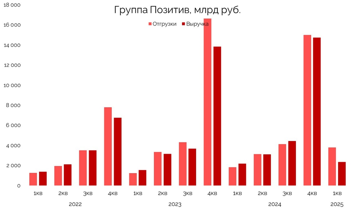 📱 Отчет Позитива за I кв. 2025 г. намекает, что изменения в компании не будут быстрыми. Отгрузки группы выросли на 107% — до 3,8 млрд руб. Компания пересмотрела систему мотивации и делает фокус на таргетирование темпов роста бизнеса в 2025 году. 👉 Рост отгрузок — это хорошо. Но мы уже видели, как в IV кв. 2024 часть отгрузок перенеслась на 2025 год. В результате чего результат был пересмотрен. Главное — чтобы новых переносов не было. Выручка выросла всего на 7,6% — до 2,3 млрд руб. (вошел не весь объем законтрактованной выручки). EBITDA и прибыль традиционно отрицательные для I квартала. Напомним, основную долю дохода Позитив получает в IV квартале. 📉 Общий долг сократился на 481 млн руб. — до 25,9 млрд руб. (ND/EBITDA ~ 1,7х). Из позитивного — традиционно в I квартале компания получает денежные средства от клиентов и погашает дебиторскую задолженность. Приток составил почти 12 млрд руб. С учетом затрат на CAPEX и OPEX, объем денег на счетах увеличился с 6,2 млрд руб. на конец