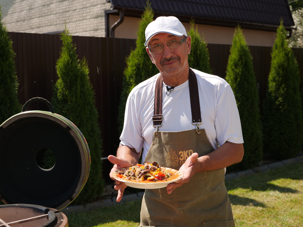 Джиз-быз – это вкуснейшее и удивительное по аромату блюдо, одно из наиболее распространенных в азербайджанской кухне. Джиз-быз - блюдо пастухов, которым они питались и питаются в своих долгих путешествиях по пастбищам. Потроха невозможно долго хранить, вот почему джиз-быз быстро готовится и тут же съедается. В сети многие ссылаются на рецепт Джиз-быза от Хакима Ганиева. Сегодня Хаким Ганиев сам приготовит Джиз-быз на этапе разогрева тандыра Восточный На 7-8 порций Специи: Шаг1. С брюшины снимаем жесткую пленку, с почек и печени снимаем пленку и вырезаем протоки. Подготовленные субпродукты и курдючный жир нарезаем небольшими кубиками со стороной 3–4 см. Шаг2. Лук шинкуем полукольцами, болгарский перец соломкой, помидоры кубиками, перец чили измельчаем. Готовим на разогреве тандыра, когда еще языки пламени вырываются из тандыра, а тандыр только начинает прогреваться. Шаг3. Ставим казан или чугунную сковороду на крестовину на горловине тандыра. Кладем кусочки жира, вытапливаем их наполо