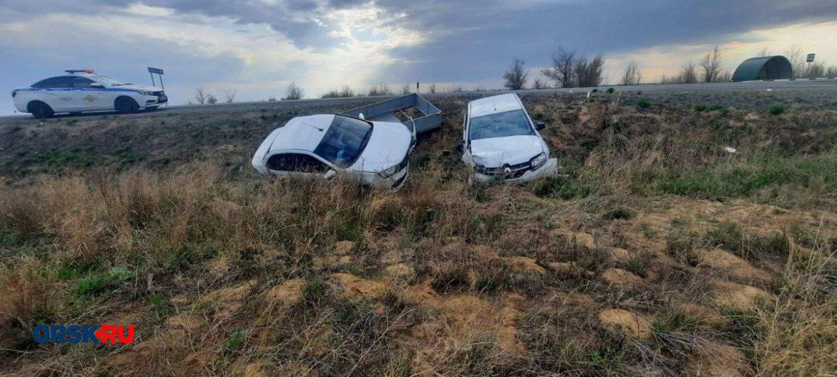 На дороге Орск — Домбаровский два автомобиля слетели в кювет: Lada и Renault