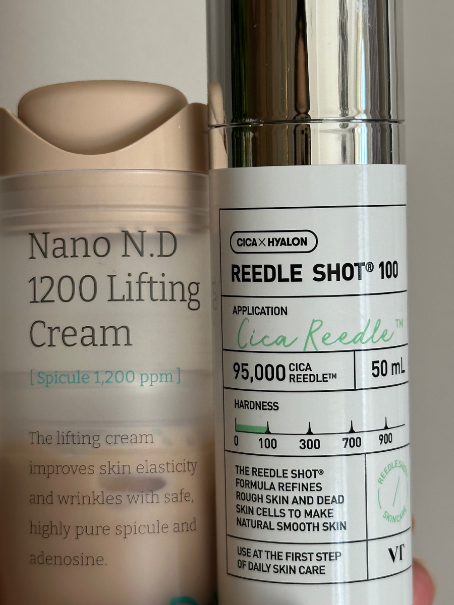 • Специальный уход – Anna Sharova, Clarins, пептидный крем Гельтек (он, кстати, идеален и для лица). Но от пептидов не ждем мгновенного эффекта, он появится только через 2-3 месяца стабильного применения + кожа должна быть отшелушенной.
