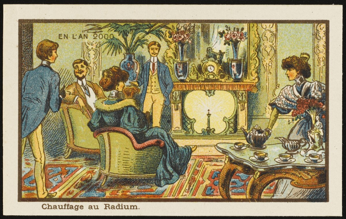 Отопление радием: камин 21 века. Французская карточка 1910 года.