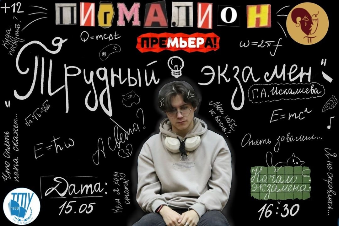 Студенческий театр «Пигмалион» приглашает на премьеру 🎭 Спектакль «Трудный экзамен» по пьесе Г.А. Искалиевой будет посвящен трудной поре экзаменов и взаимоотношениям родителей и подростков в этот период. 📆 Премьера состоится 15 мая в 16:30 в актовом зале 4 учебного корпуса. Пригласительные можно получить у художественного руководителя театра 👈🏻 До встречи на спектакле! ✨ #УниверситетЛьваТолстого