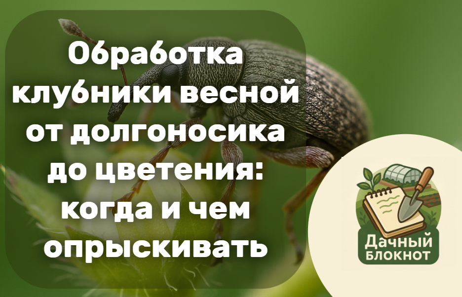 Долгоносик — один из самых опасных вредителей клубники ранней весной. Он повреждает бутоны, откладывает в них яйца и резко снижает будущий урожай. Поэтому важно провести первую обработку клубники от долгоносика весной, не дожидаясь цветения. 📌 В этой статье: - когда и как проводить обработку от долгоносика - чем опрыскивать клубнику до цветения - народные и безопасные способы (нашатырный спирт, зола и др.) - график и пошаговая схема обработки - как распознать вредителя 📌 Важно: если вы заметили «пустые» цветоножки — это работа долгоносика. ✔️ Первая обработка проводится до цветения, как только температура воздуха стабильно держится выше +7 °C