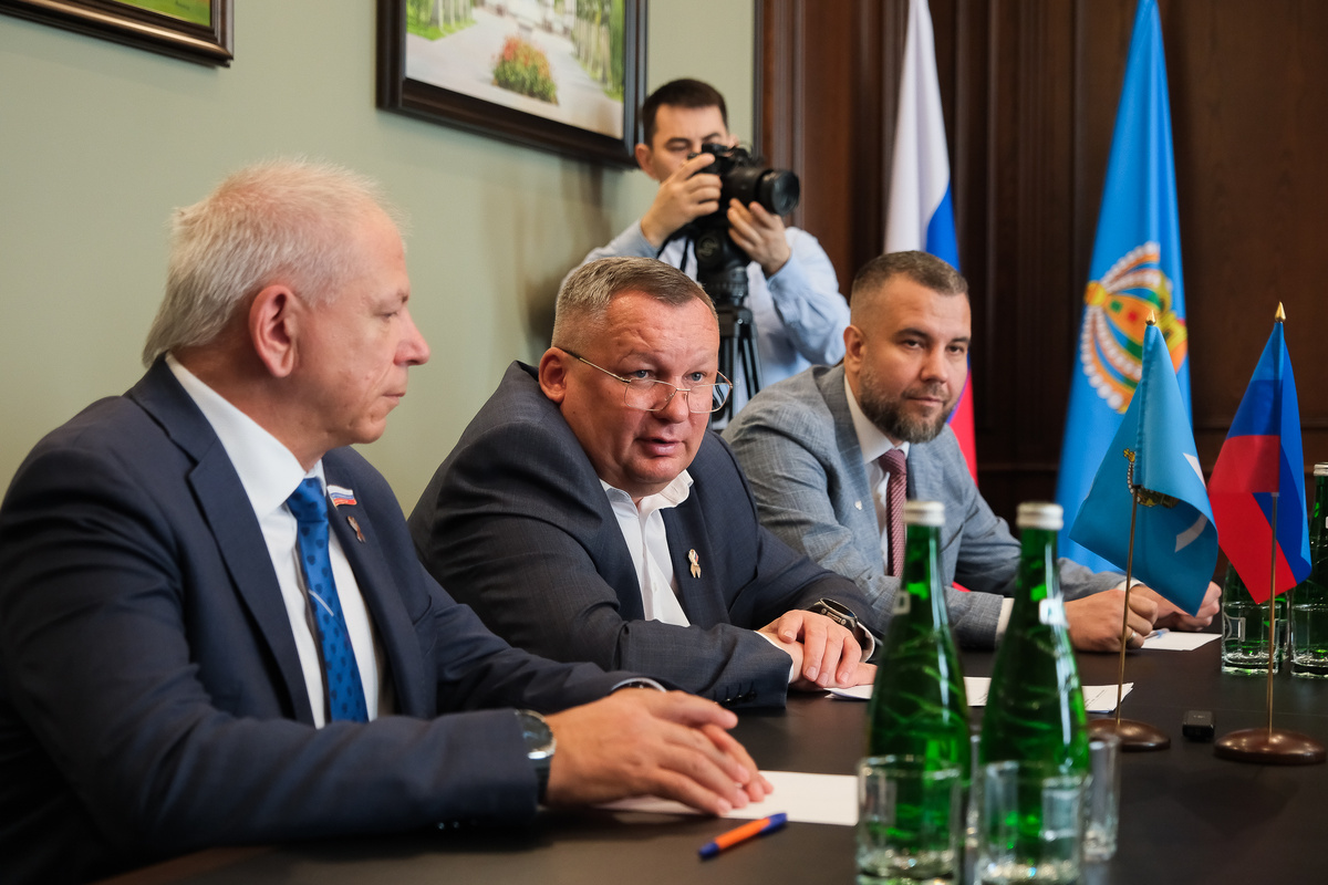 Спикер регионального парламента Игорь Мартынов провел встречу с делегацией Кременского района Луганской Народной Республики, которая прибыла в Астраханскую область с рабочим визитом.
