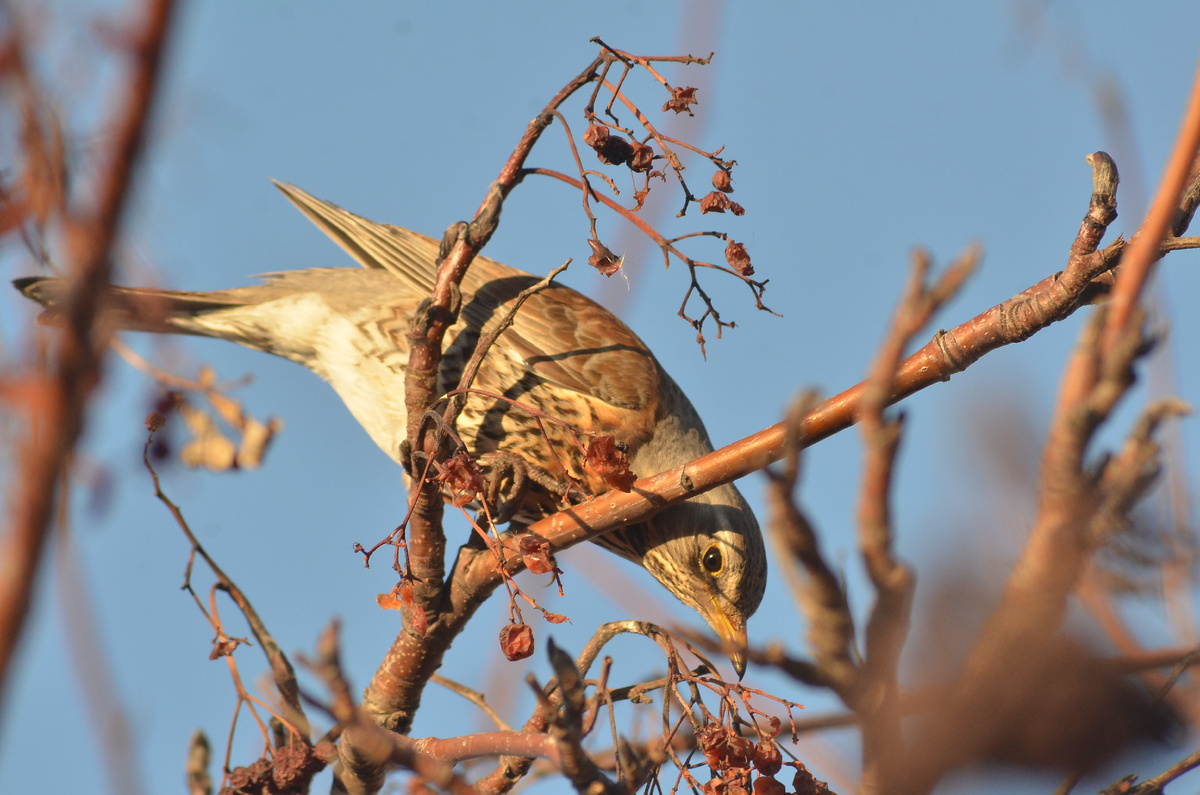 – В эту зиму было заметно, что ягодные яблони были объедены синантропными (зависящими от человека) сизыми голубями ещё до начала нового года, и даже дроздам-рябинникам мало что досталось, – продолжает рассказ Борис Юрьевич. – И всё же, находя корм, дрозды-рябинники постепенно увеличивают свою численность на территории города, после схода снега начиная лепить в развилках ветвей гнёзда-чашечки из грязи и выстилая их стебельками трав.