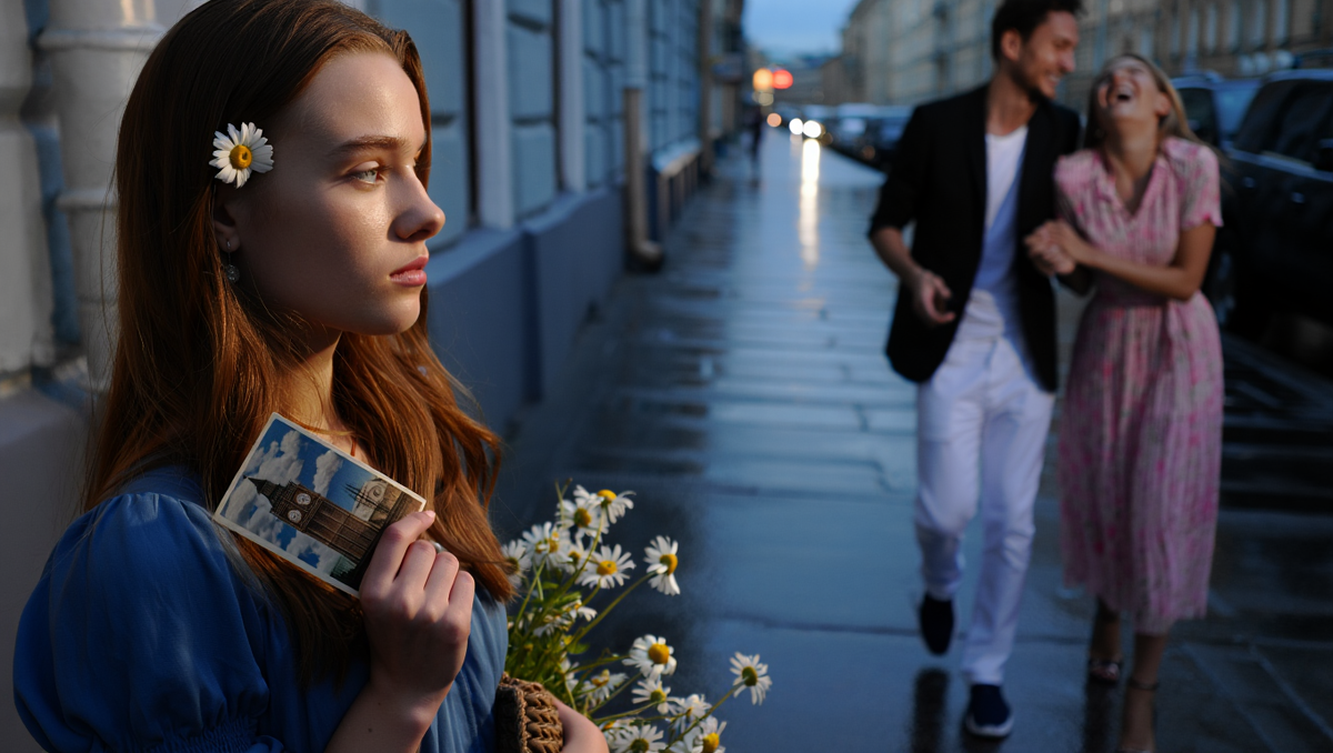 Катя сидела в кофейне «Зингер», глядя на мокрый Невский. В руках — квас и ромашка, сорванная у метро. Лиза, болтая за стойкой, крикнула: