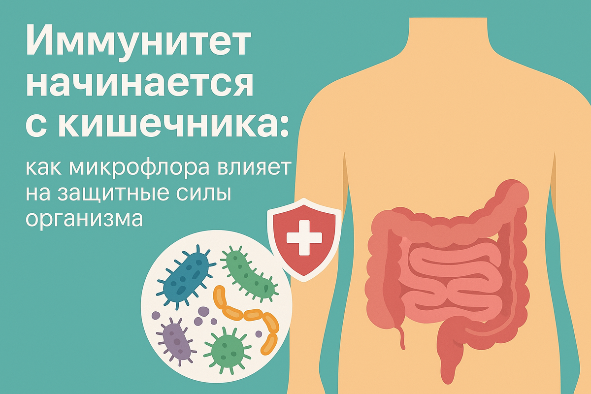 Почти 80% всей иммунной защиты — в кишечнике. Там живут бактерии. Они обучают иммунитет, регулируют воспаления и помогают бороться с вирусами.
