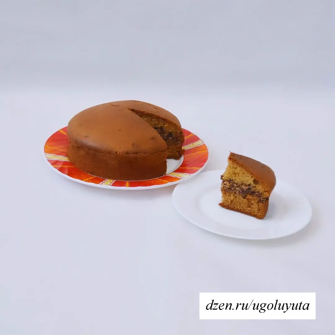 Тесто. 80гр сливочного масла 80гр сахара 2 яйца 200гр сметаны 220гр муки 1ч.л. разрыхлителя 1ч.л. соды Взбить масло с сахаром. Добавить яйца и снова взбить до воздушной массы. Добавить сметану, перемешать. Последними добавить сухие ингредиенты (мука, сода, разрыхлитель) и снова перемешать. Начинка. 150гр орехов 30гр сливочного масла 40гр сахара 1ч.л. корицы Все перемешать. В форму ф18см выложить половину теста, начинку и накрыть второй половиной теста. Выпекать при 180С около 60 минут.