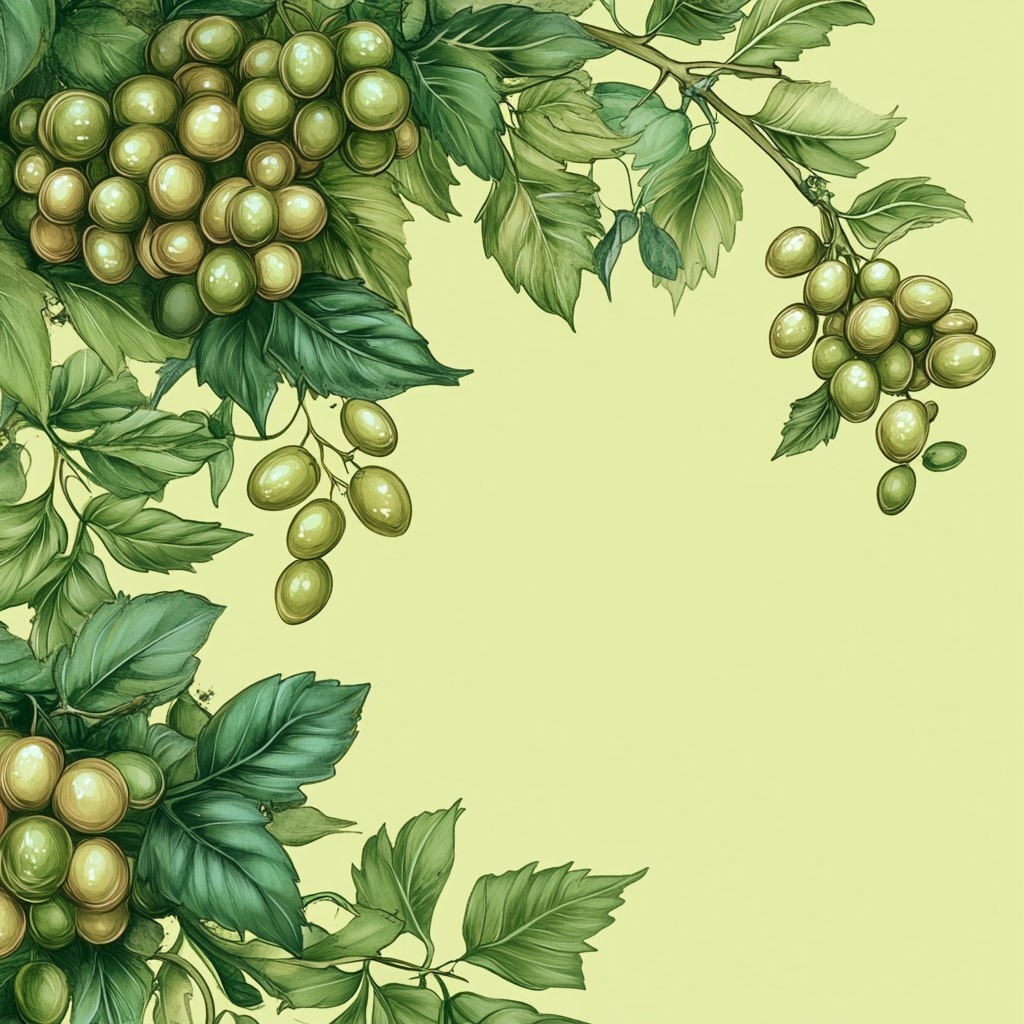 Создано на основе запроса: a greeny banner for twitter profile with leaves, grapes and olives
