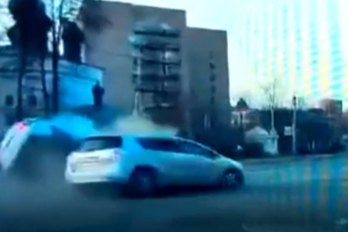 Появились кадры момента опрокидывания машины ДПС в Иванове