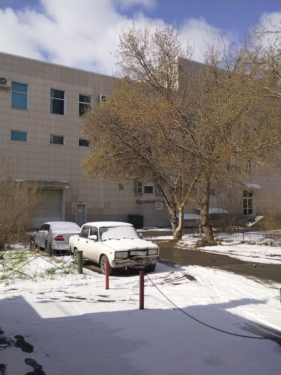 Выхожу из дома и вижу... снег! Лежит трёхсантиметровым покрывалом прикрывая своей снежной тканью огромный город.