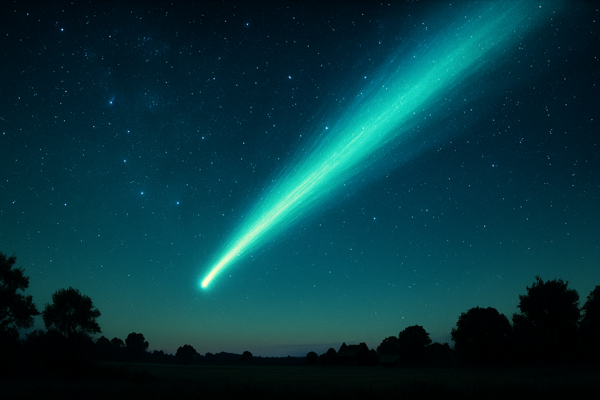 Астрономы прогнозируют пиковую магнитуду –5 в начале мая. Рассказываем, где и когда смотреть. Небо готовит представление, способное затмить все фонари. Комета E2 состоит из льда CO₂, создающего яркую цианистую кому. Перигелий — 3 мая, расстояние до Земли — 0,35 а. е. Яркие кометы редки — последний подобный фейерверк был в 1997-м (Хейл-Бопп). Сохраните статью и делитесь кадрами с хэштегом #CometE2!
