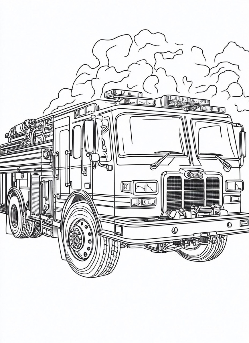 Создано на основе запроса: realistic fire truck coloring page for adults