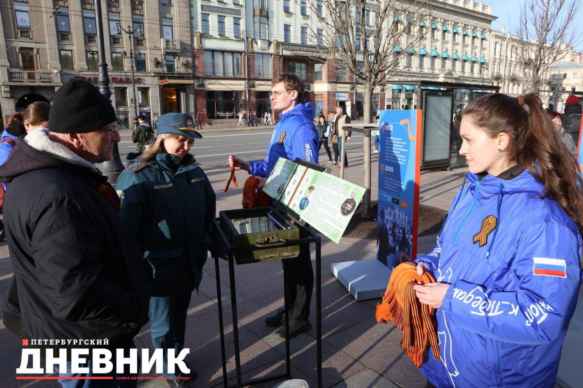 💫 Волонтеры Победы раздают символы мужества в центре Петербурга