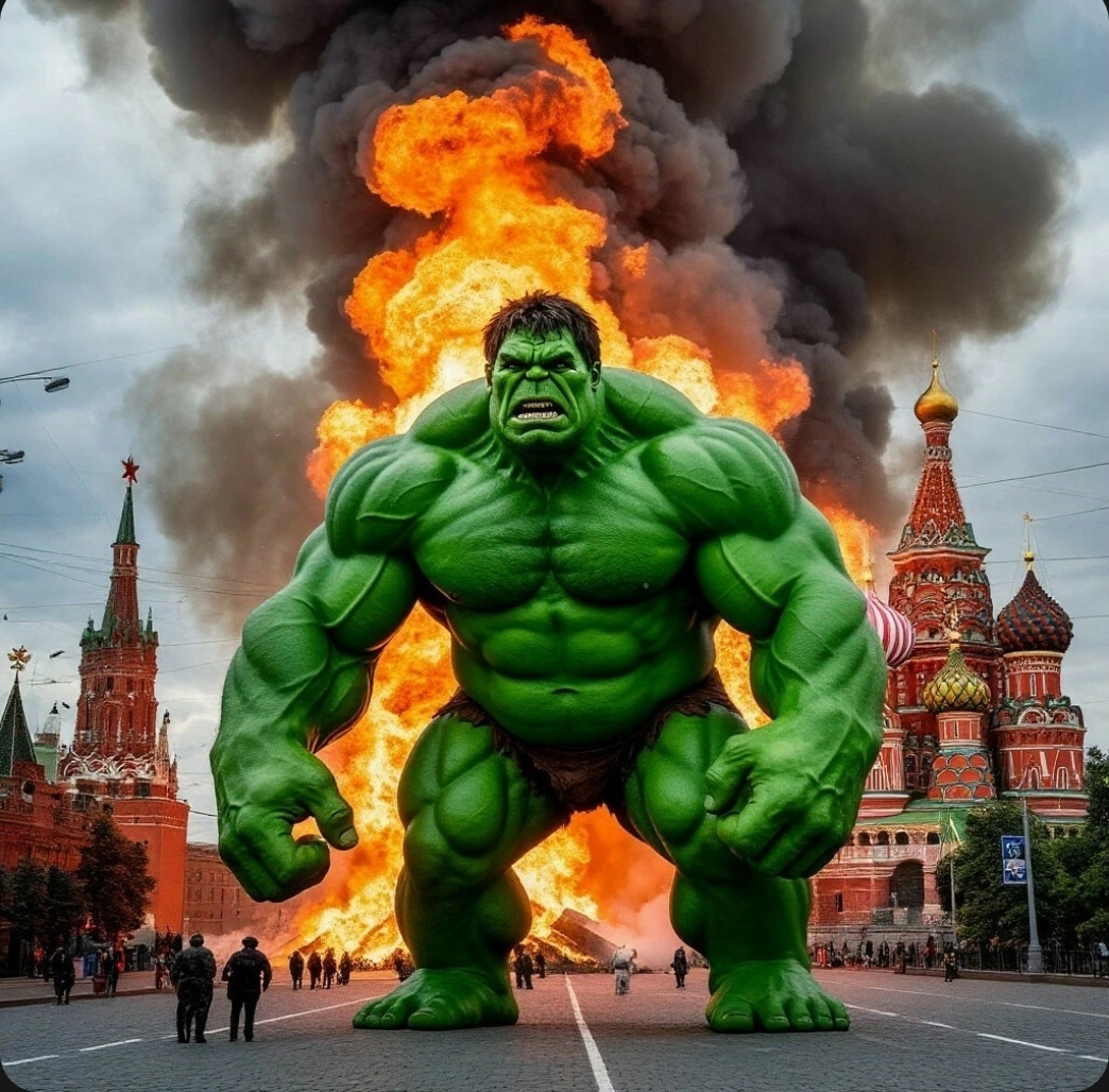Где-то в глубинах русских земель, в дремучих лесах, где время течёт иначе, а былинные герои всё ещё бродят по свету, начинается наша история... ### Глава 1: Пробуждение богатыря Илья Муромец спал тридцать лет и три года в своей пещере, но однажды его разбудил грохот, от которого задрожала земля. Выбравшись наружу, он увидел, что небо над Русью почернело, а из стольного града Киева доносились крики и звуки битвы. — Что за напасть? — проворчал богатырь, хватая меч и щит. Но то, что он увидел в Киеве, превзошло все его ожидания: город был разрушен, а по улицам бродили огромные железные чудища, изрыгающие огонь. — Нечисть какая-то — пробормотал Илья, но тут один из монстров заметил его и направил своё жерло. Внезапно с неба упал зелёный великан, сокрушив машину одним ударом. — Халк крушить! — прогремел он. Илья удивился, но быстро сориентировался: — Ты кто будешь, добрый молодец? — Я Халк! А ты кто? — Илья Муромец, защитник земли русской! Халк оскалился: — Тогда вместе крушить! ### Глава 2