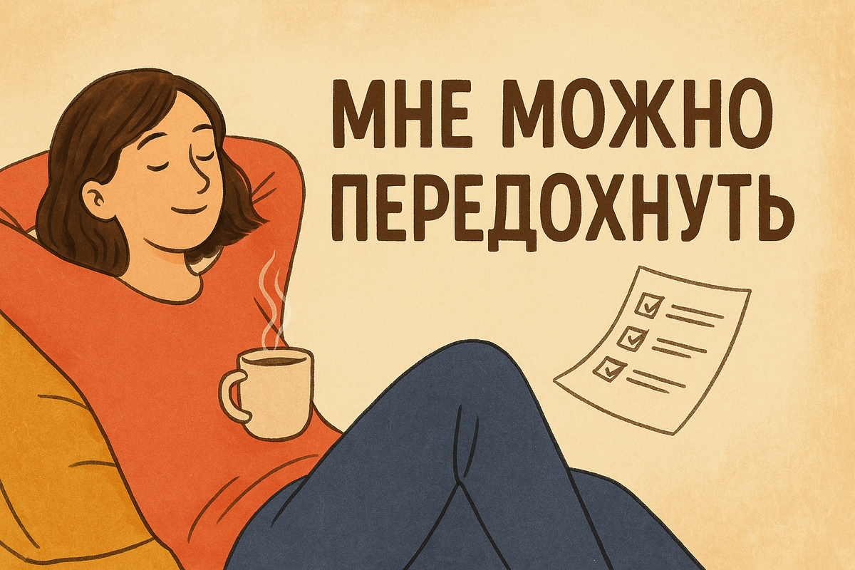 Но человек — не приложение-планер. Наши ресурсы цикличны, а не линейны, и право на паузу встроено в биологию так же, как право на вдох. На день три уровня задач: 25/5 классический помодоро подходит не всем. Попробуй 50 минут фокус-работы + 5-минутное растяжение, глоток воды, взгляд в окно. Пауза встроена, а не откладывается «на потом». Никаких чек-листов, даже приятных. Встать без будильника, идти, куда тянет. Этот «ничей» день перезаряжает батарею сильнее, чем уик-энд с экскурсиями по графику. Запиши 10 вещей, которые хочется делать без результата: рисовать каракули, слушать дождь, лежать и смотреть в потолок. Делай одну из них каждый день хотя бы пять минут. Заменяй «я должна» на «я могу» или «сейчас выбираю».