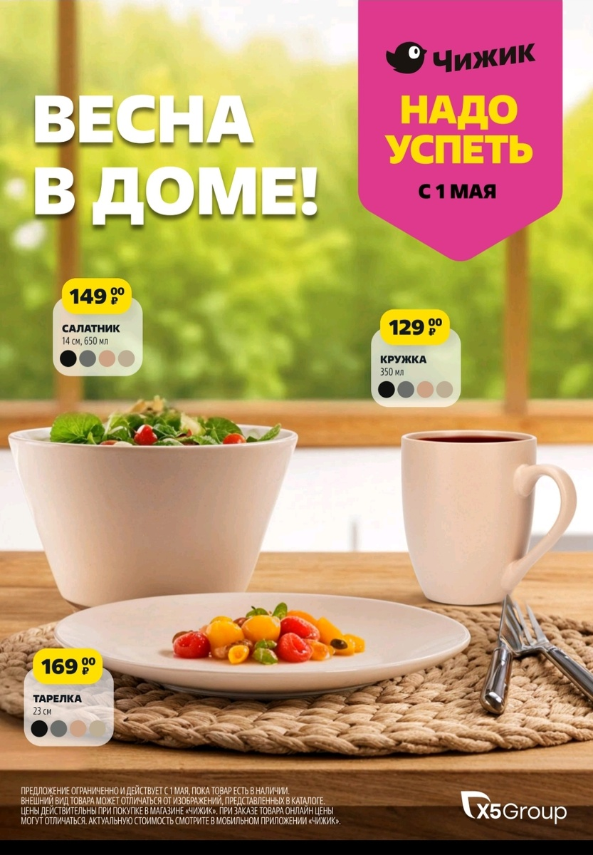 Приветствую всех! Ссегодня уже вышел Новый Каталог магазина Чижик с 1 Мая 2025 года. Вы будете первыми, кто увидит эти новинки и, надеюсь, что многие из них будут вам полезны и необходимы! Весна в доме! Новая посуда: Салатник, Тарелка и Кружка в одном стиле. Приятный цвет и элегантная форма. Реальная проверка качества! Купите товар, оставьте отзыв и получите приз! Качество подтверждено наградами! Сервелат Вернер, натуральное копчение на щепе. Только в Чижике! Зеленый горошек. Сыр Чечил из свежего молока. Красная фасоль. Кенийский чай. Только в Чижике! Рулет и маффины, блигчики и крекер, яблочный сок без сахара. Успейте купить выгодно! Кетчуп Лето. Фасоль красная. Аджика махеев. Успейте купить выгодно! Зефирюшки, Вафельный сэндвич Яшкино. Шоколад Киндер. Успейте купить выгодно! Чипсы картофельные Премьер. Напиток энергетический. Печенье венское. Печенье детское. Успейте купить выгодно! Сахарная вата. Круассан и пироженое бисквитное Конфик. Кофе растворимый Жокей. Для Вашей кухни