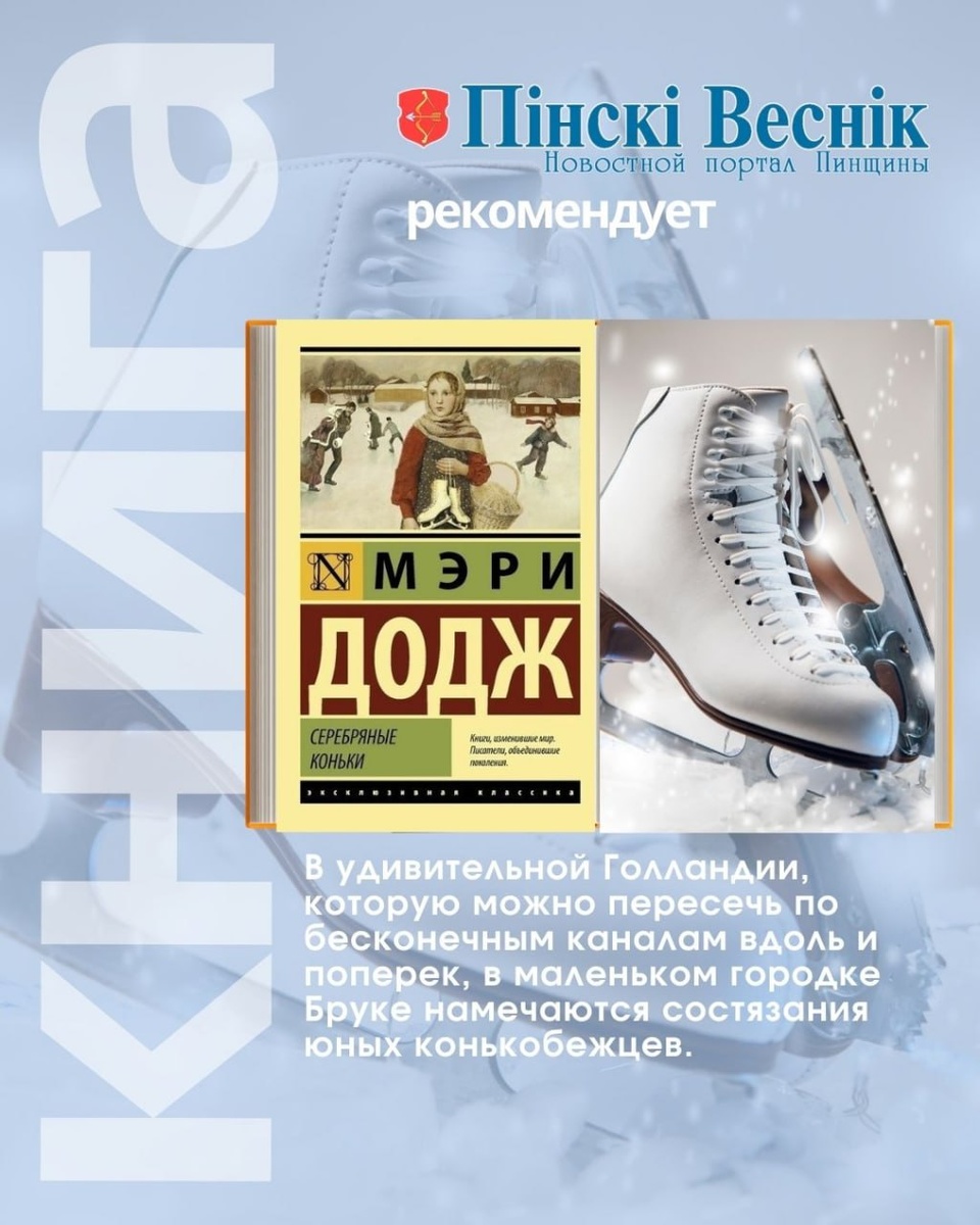📌Мэри Мейпс Додж "Серебряные коньки" 👉В удивительной Голландии, которую можно пересечь по бесконечным каналам вдоль и поперек, в маленьком городке Бруке намечаются состязания юных конькобежцев. Победителя ждет заветный для каждого приз – серебряные коньки. Но больше всех о них грезят дети бедняков Бринкеров, Ханс и Гретель, чей отец десять лет назад упал с плотины и стал калекой. 🧩И хотя эта мечта кажется им недостижимой, накануне Рождества, когда сам воздух пахнет волшебством, обязательно случаются чудеса… 📍📍@Пинский Вестник ЮТУБ | САЙТ| ИНСТ | ВК | ОК | ФЕ | Прислать новость