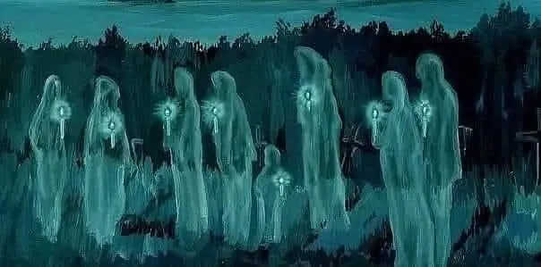 В итоге их собралось такое количество, что реальные прихожане казались монаху яркими фигурами на фоне этих призрачных теней. Безмолвно приближаясь, тени останавливались у алтаря. Некоторые как будто преклоняли колени, другие склоняли головы, словно ожидая решения своей участи. Дети тянули руки к свечам на кануне и к рукам живых молящихся.