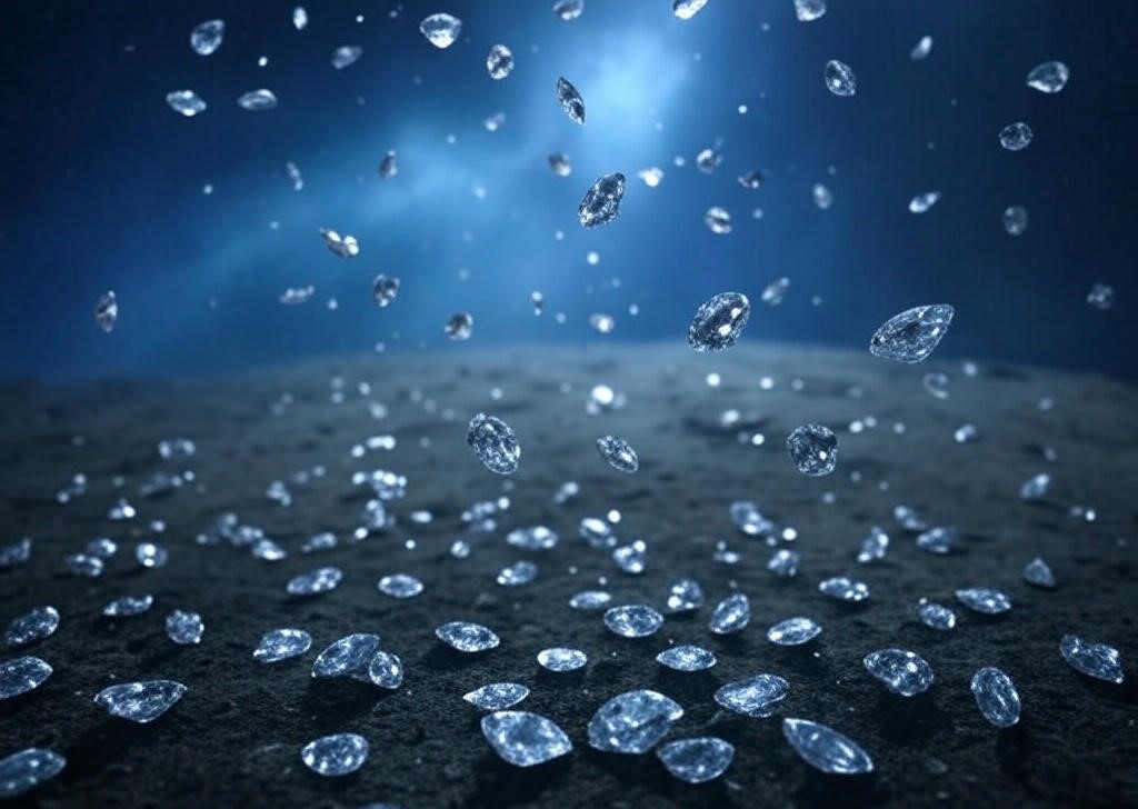 Мечтали ли вы когда-нибудь, чтобы бриллианты падали к вам прямо с неба? Протянуть руку — и собрать сколько угодно? Тогда просто отправляйтесь в тур по Урану и Нептуну! Эти ледяные гиганты скрывают в своих недрах условия, при которых углерод превращается в алмазы и буквально падает с неба. Ученые предполагают, что под слоями водорода, гелия и метана давление достигает таких чудовищных значений, что атомы углерода сжимаются в кристаллическую решетку алмаза.