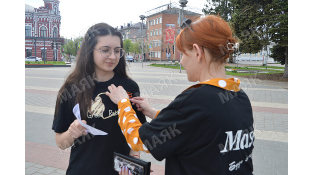 Сегодня, 24 апреля, стартовала патриотическая Всероссийская акция «Георгиевская ленточка». Традицонно к ней присоединилась новозыбковская районная газета «Маяк». Сотрудники издания вышли на улицы города, чтобы раздать горожанам символ праздника - Георгиевские ленточки. К акции также присоединились волонтеры Центра развития добровольчества Новозыбкова. Черно-оранжевые ленточки юноши и девушки прикрепляли у сердца прохожих, напоминая о начале акции и поздравляя с наступающим Днем Победы. Акция продлится до 9 мая. Новозыбковская районная газета «Маяк» присоединилась к акции «Георгиевская ленточка»