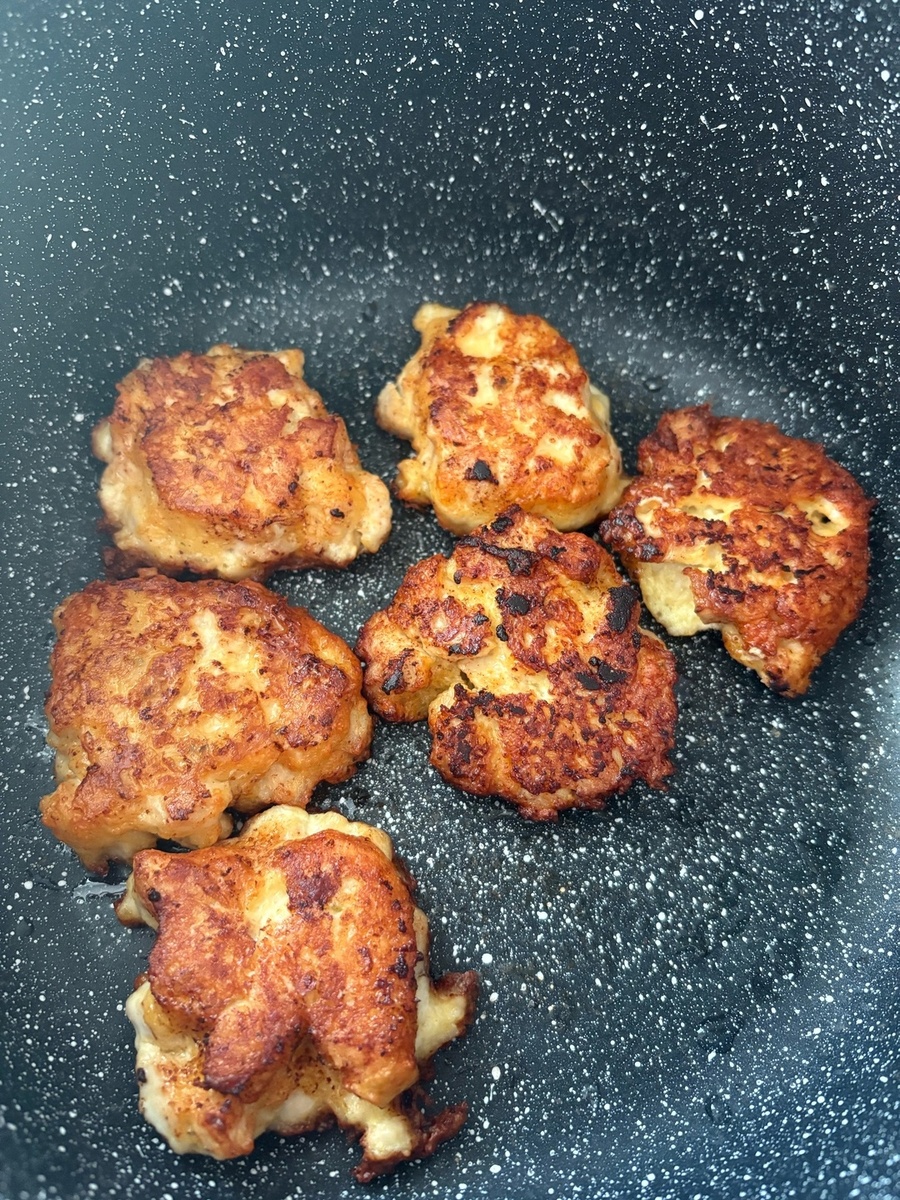 Промытое куриное филе нарежьте мелкими кубиками, словно создавая магический узор. Каждый кусочек будет пропитан энергией и готов стать частью этого кулинарного шедевра. Шаг 2: Заклинание вкуса Добавьте яйца теперь сметану немного специй и соли Натрите сыр на мелкой тёрке и всыпьте его в эту ароматную смесь. добавьте муку и тщательно перемешайте, создавая симфонию вкусов, которая будет радовать ваши вкусовые рецепторы. Шаг 3: Танец на сковороде