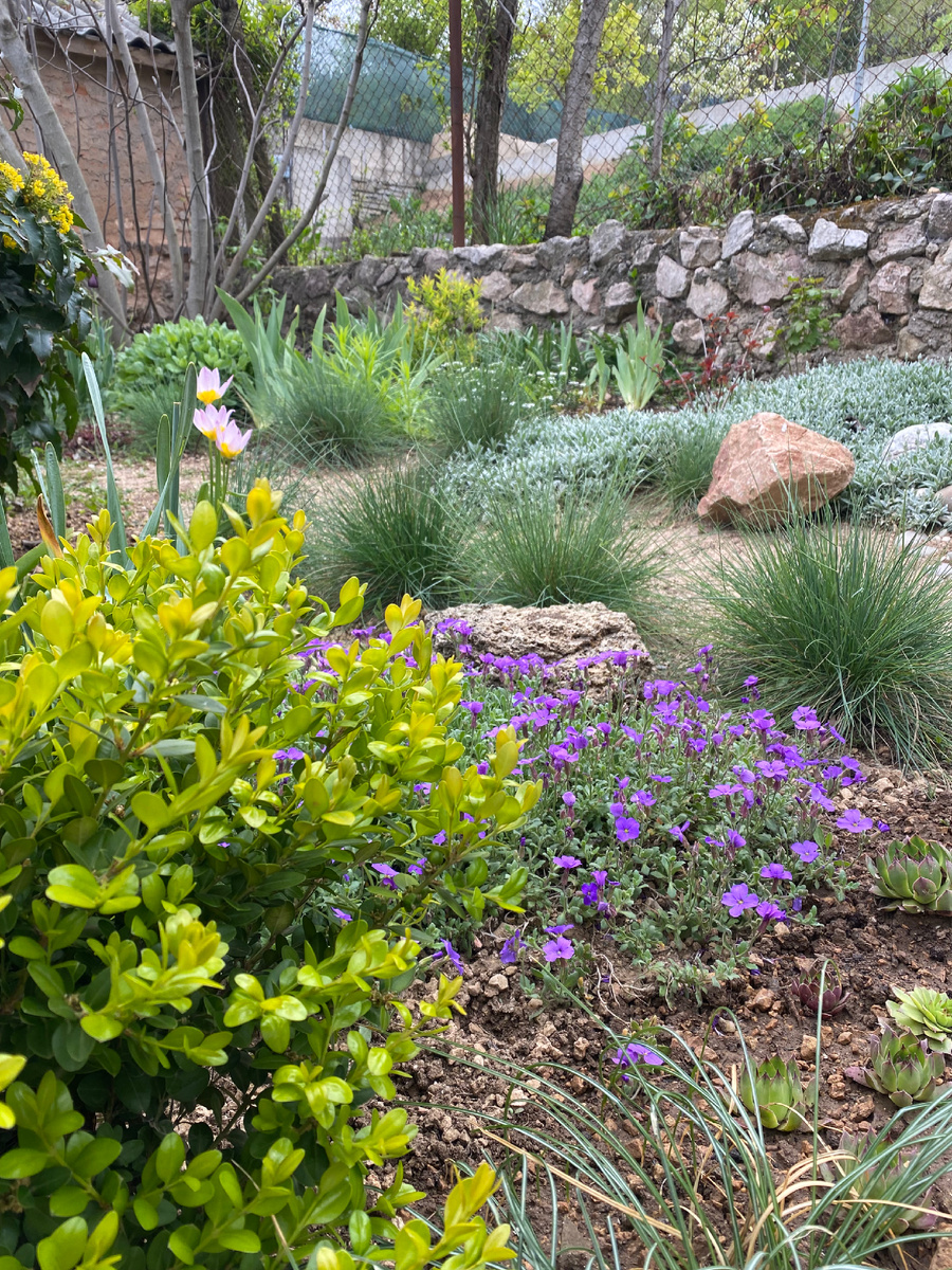 24.04.25 Третья декада. Могло бы быть более живо и зелено, при условии обычной дождливой крымской зимы. Зима 24-25 была очень сухой. Известняки не успели напитаться влагой настолько, чтобы щедро отдавать ее весной, дополняя весенние дожди. Весна побаловала нас, всего лишь, парой густых ливней. Ждём-дожидаемся начала поливного сезона. Он у нас с мая месяца. А пока растаскиваю камни.) Распустились прошлогодние сеянцы ибериса. Здесь растёт четыре растения. После цветения обрежу, будет четыре полноценных готовых взрослых кустика. Но места хватает только для одного. Рассадим. Иберис цветёт, в основном весной, длительное время. Приятно осветляет клумбу. Уютно чувствует себя хоста, прикрытая соседским сараем, который выполняет в нашем саду роль живописных развалин. Встал на свое место поздний тюльпан. Активно отрастают пионы, весьма декоративно раскрывая молодые листья. Этот будет темно-бордовым. Давно куплен недорогой деленкой у садовода-любителя. Больше 10 лет назад, уже делила его один