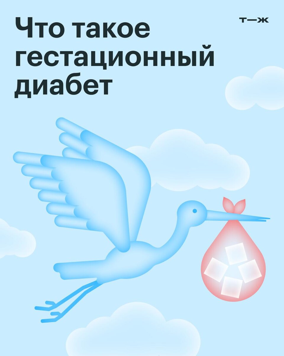 Что такое гестационный диабет и как его выявить Гестационный сахарный диабет, или ГСД, — состояние, при котором уровень глюкозы в крови повышается во время беременности и нормализуется после родов. Важно, что сахар повышен не настолько, чтобы можно было сказать, что у женщины сахарный диабет первого или второго типа. ✍️ Записываем цифры: нормальный уровень глюкозы в крови для беременных женщин — до 5,1 ммоль/л. Если он 5,1—6,9 ммоль/л — это гестационный диабет, а если 7 ммоль/л и более — сахарный диабет. ❗️ Почему это важно. Норма уровня сахара в крови для небеременных женщин — до 6,1 ммоль/л, то есть во время беременности она строже. Это связано с тем, что даже та концентрация глюкозы в крови, которая обычно на человека никак не влияет, может приводить к опасным последствиям для матери и малыша. Например, к преждевременным родам или увеличению размеров и веса ребенка в сочетании с незрелостью его органов. ⚗️ Как диагностируют ГСД. Симптомов у гестационного диабета нет, поэтому об