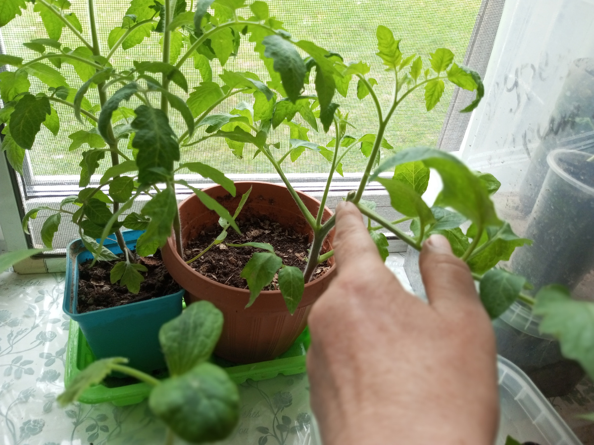Недели две назад у высокорослого помидора обрезала верхушку И уже пошли пасынки. Сделала я это для того, чтобы цветочные кисти завязывались не после 7 - 9 листа, а пораньше. Это мой очередной эксперимент, ну а верхушку я укоренила в вермикулите, Дали хорошие корешки, пересадила в землю, посмотрим после какого листочка даст цветочную кисть, наблюдаем, если понравится такой эксперимент буду так делать, но эти помидоры я высадила в феврале, что бы пораньше срезать.