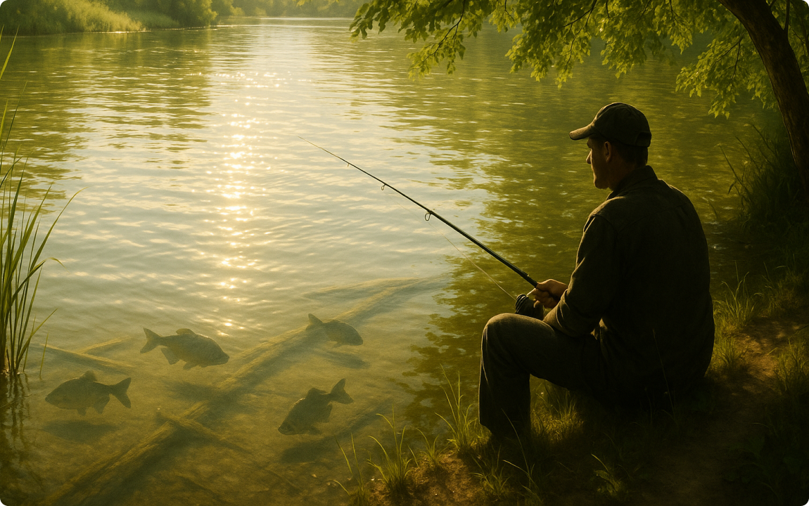 📌 Прикорм: сладкий, с анисом или ванилью В жару эти места становятся природным кондиционером. Более холодная вода привлекает мелочь, а за ней — и леща. 📌 Ловля: с нижнего края стру