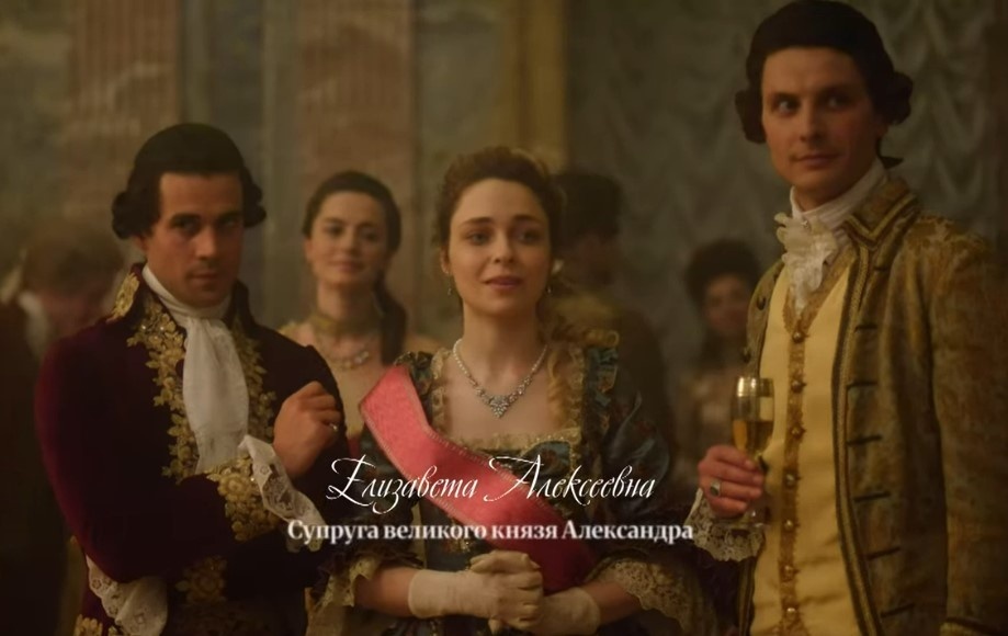Вот он в сериале рядом с Елизаветой в бордовом камзоле с золотой вышивкой: