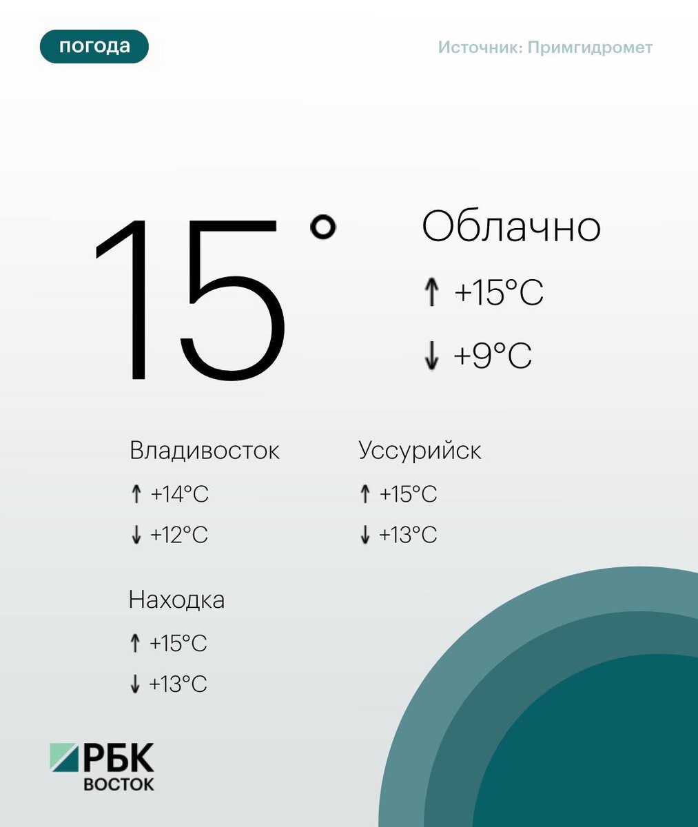 Сегодня погоду в Приморье определяют фронтальные разделы. Небольшой, местами умеренный дождь. На северо-востоке утром осадки, местами сильные (дождь, мокрый снег). В отдельный районах туман. Ветер юго-западный, днем умеренный до сильного. Температура воздуха днем +9...+15°C 🌧 Во Владивостоке переменная облачность, в конце дня возможен небольшой дождь. Утром местами туман. Ветер юго-западный, западный умеренный до сильного, во второй половине дня временами сильный. Температура воздуха +12...+14°C. 🍱Подписывайтесь на РБК Восток