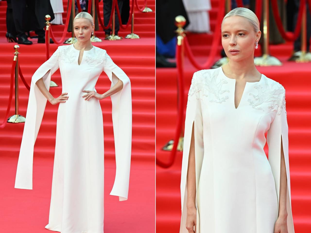 Для посещения торжественного открытия 47-го Московского кинофестиваля, состоявшегося в театре «Россия», Анна Александрова предпочла изысканный наряд. Она выбрала элегантное платье от Alena Akhmadullina с простым кроем и распашными рукавами, расшитое вручную бисером. В этом образе достигнуто идеальное сочетание сдержанной утонченности и виртуозного исполнения.