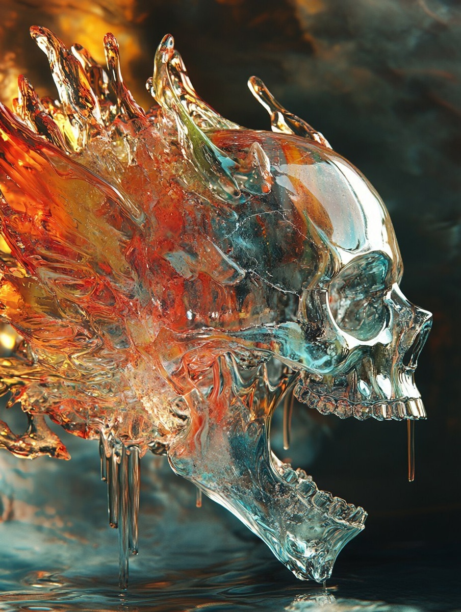 Создано на основе запроса: Hydro spectral liquid waterdripping Phoenix rising in tempest from an almost clear crystal skull, dripping liquid