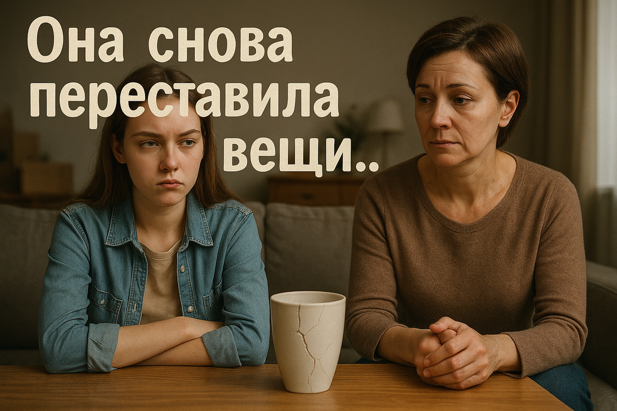 Анна пила кофе в гостиной, пытаясь не обращать внимания на то, как мать вытирает уже чистый стол. Вдруг из кухни донесся странный звук — будто что-то упало и разбилось.