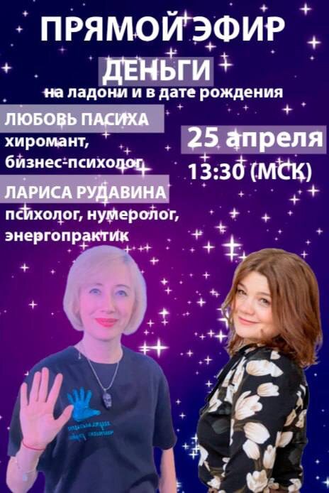 🅰️РЯМОЙ ЭФИР!!!💰 🔥ДЕНЬГИ НА ЛАДОНИ И В ДАТЕ РОЖДЕНИЯ 📅 25 апреля ⏰ 17:30 НСК / 13:30 МСК Присоединяйтесь к прямому эфиру на канале: https://dzen.ru/id/5daa7f345ba2b500b1c1f8cd с экспертами: • Лариса Рудавина https://t.me/larisa_rudavina — психолог, нумеролог, энергопрактик • Любовь Пасиха https://dzen.ru/id/5daa7f345ba2b500b1c1f8cd — профессиональный хиромант, бизнес-психолог Что вы узнаете: 🔸 Как определить денежный потенциал по линиям и знакам на ладони 🔸 Какие числа в дате рождения влияют на финансовое благополучие 🔸 Практические техники работы с энергетическими потоками 🔸 Реальные примеры из практики экспертов 💡 Вы получите инструменты для: • Усиления финансового потенциала • Работы с энергетическими блоками • Привлечения денежного потока • Познания своего финансового кода Присоединяйтесь к эфиру и получите возможность задать свои вопросы экспертам!