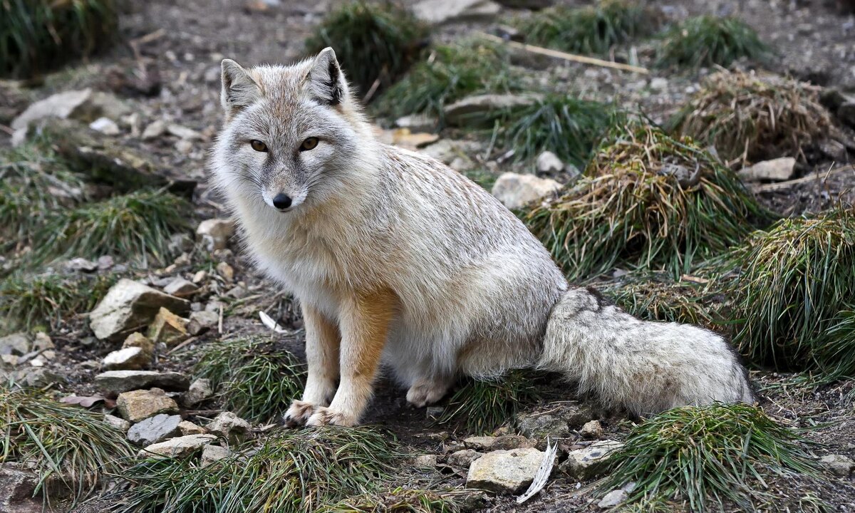 Впрочем, если присмотреться, то можно заметить, что корсак все же немного отличается от обычной лисицы. Например, у корсаков ноги длинные и тонкие, хвост короткий, да и не такой пушистый как у лесной сестры. Зимой их шерсть окрашена в бледно-серые тона, бока желтовато-белые, на хвосте красуется черное пятно. Шея и участки возле рта желтовато-белые. Столь неброский наряд позволяет животным быть малозаметными на фоне сухих степных трав и земли, едва присыпанной снегом.
