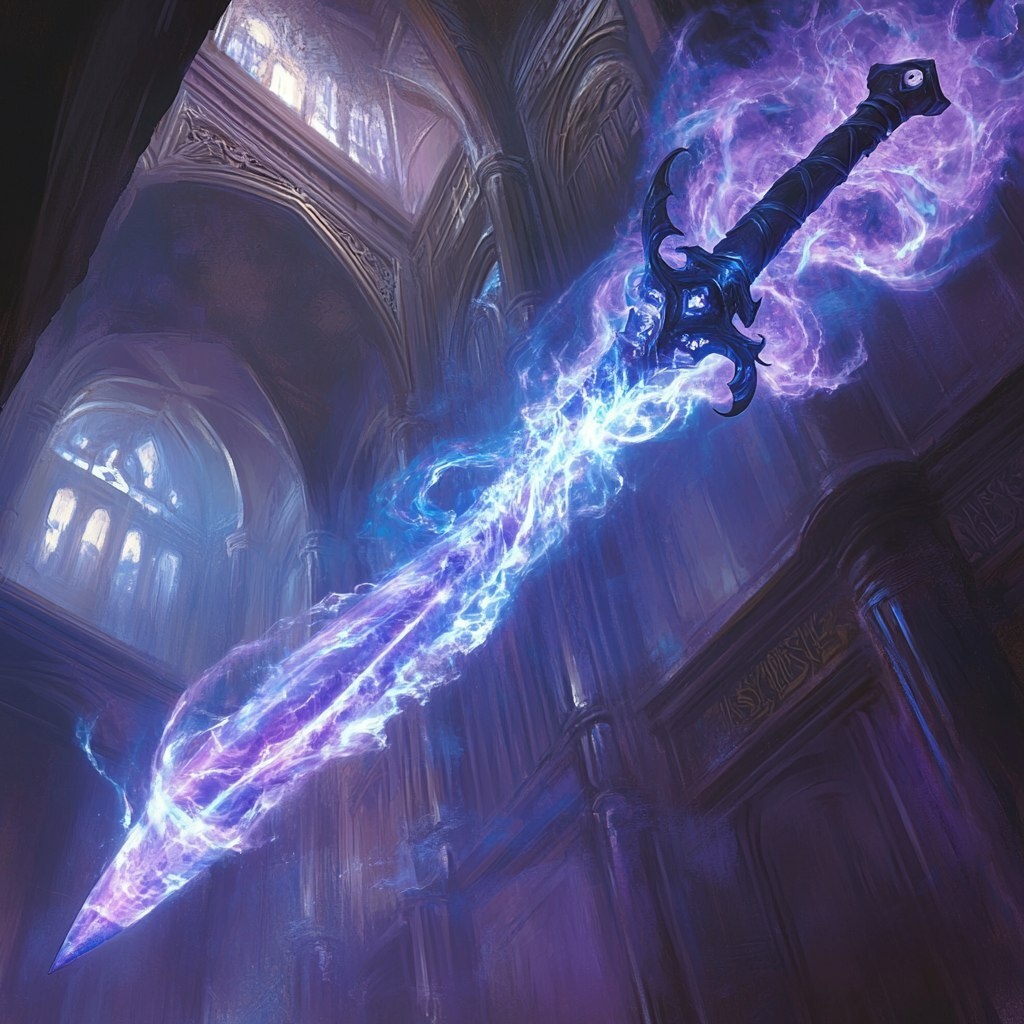 Создано на основе запроса: A mystical, psychic-infused rapier glowing with ethereal energy. The blade shimmers with a shifting, semi-transparent aura of purples and blues, as if phasing between realities. Subtle runes pulse along the blade’s length, and ghostly wisps of psychic energy swirl around it. The hilt is ornate but slightly asymmetrical, giving it an unpredictable, chaotic elegance. The air around the blade appears distorted, as if affected by unseen mental forces. Background is a dark arcane chamber or astral dreamscape. Fantasy style, high-detail, magical and mysterious atmosphere, realistic rendering --- Автоперевод: Мистическая рапира, наполненная экстрасенсом, светясь эфирной энергией. Красиво вышло? 🤔 https://dzen.ru/id/65c0c65c86e4f837c27b24d7 #ИИ #AI #нейросеть #midjourney #art
