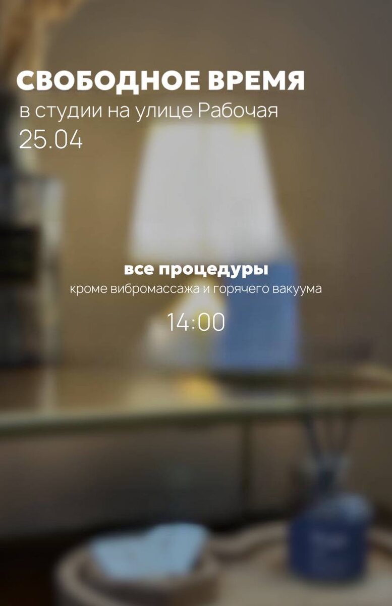 СВОБОДНОЕ ВРЕМЯ НА РАБОЧЕЙ 25.04 • ONLINE запись • WHATSAPP Ждём вас к нам на процедуры 🤍
