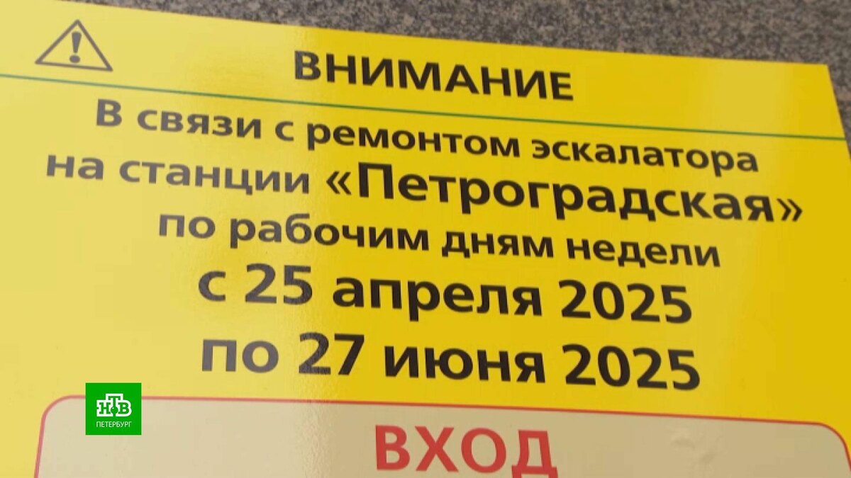 [ Смотреть видео на сайте НТВ ] На «Петроградской» начинается ремонт одного из эскалаторов. По этой причине начиная с завтрашнего дня вход на станцию будет закрыт. С 07:30 до 10:30 войти будет нельзя, а с 15:15 до 19:50 вход будет ограничен. Предполагается, что работы продлятся до 27 июня. Кроме того, до конца сентября на станции будет проводиться капитальный ремонт автоматических станционных дверей. [ Смотреть видео на сайте НТВ ]
