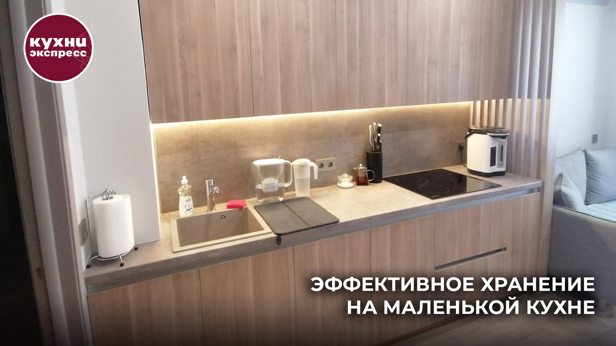 Маленькая кухня — это не приговор, а повод проявить фантазию и организовать пространство с умом. Даже на скромных метражах можно создать удобную и функциональную кухню, если использовать продуманные системы хранения. Рассмотрим лучшие приемы, которые помогут разместить все необходимое без ощущения тесноты. На маленькой кухне каждый сантиметр на счету, поэтому важно задействовать стены и высоту помещения. - Навесные полки – на них можно поставить специи, крупы в красивых банках или часто используемую посуду. - Рейлинговые системы и крючки – подходят для подвешивания кухонных принадлежностей (ложек, лопаток, кружек, кастрюль). - Магнитные держатели – удобны для ножей и металлических специй. - Ну и конечно же корпуса увеличенной высоты и менсольные уровни под потолок Внутреннее наполнение кухонных шкафов играет ключевую роль. - Выдвижные органайзеры – помогают компактно хранить специи, бутылки с маслом, банки. - Разделители для посуды – предотвращают хаотичное нагромождение тарелок и к